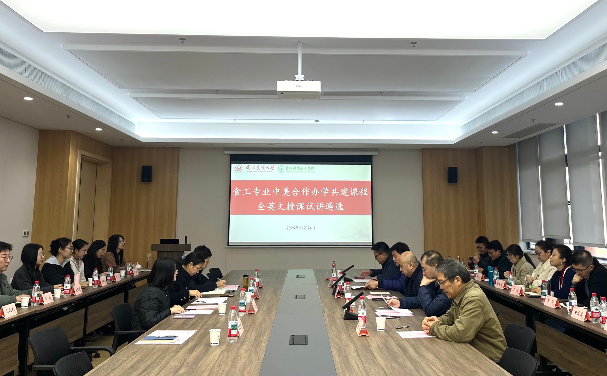 2025年11月24日上午,bat365正版唯一官网在滨江校区顺利举办“食工专业中美合作办学共建课程全英文授课试讲遴选会”。国际合作与交流处处长石松、bat365正版唯一官网党委书记孙健、院长李春保、副院长胡冰、李远出席会议,5位评委及15位青年教师参与试讲。会议由胡冰副院长主持。
