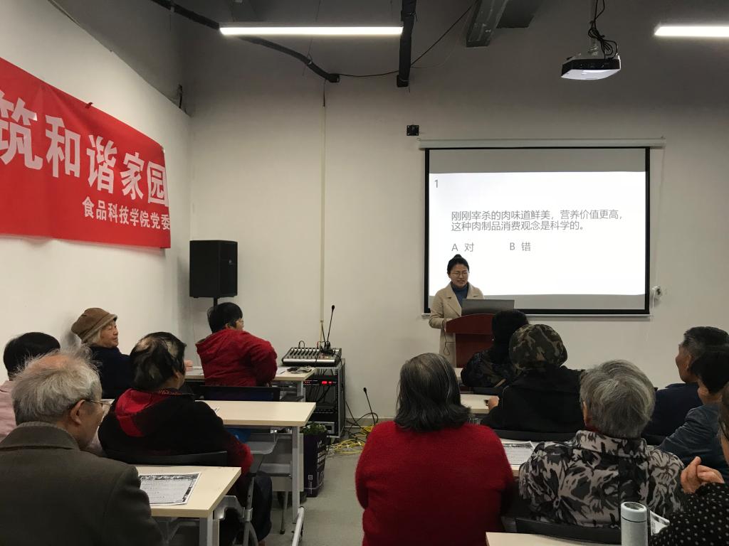 孟凡强博士从防范保健食品骗局、假保健品危害及中老年人常见疾病预防等方面进行介绍,帮助中老年人正确认识保健品,了解健康养生方法。乔家驹博士从食品安全小常识、伪劣产品的判别、实物中毒的原因及果蔬农药残留的去除等对食品安全防范的知识进行讲解,让老年人了解常见的食品安全误区,学习更科学的食品安全预防措施