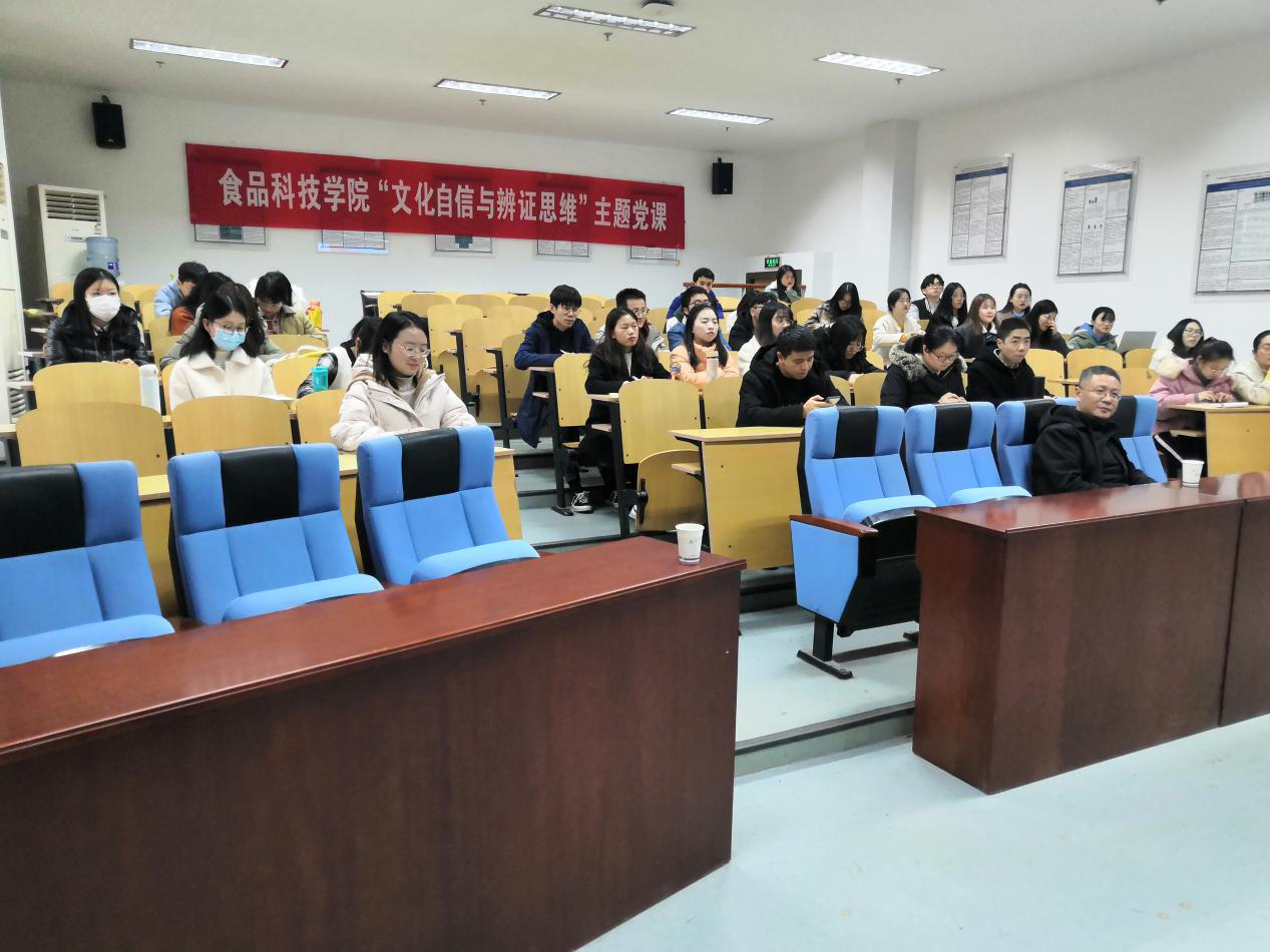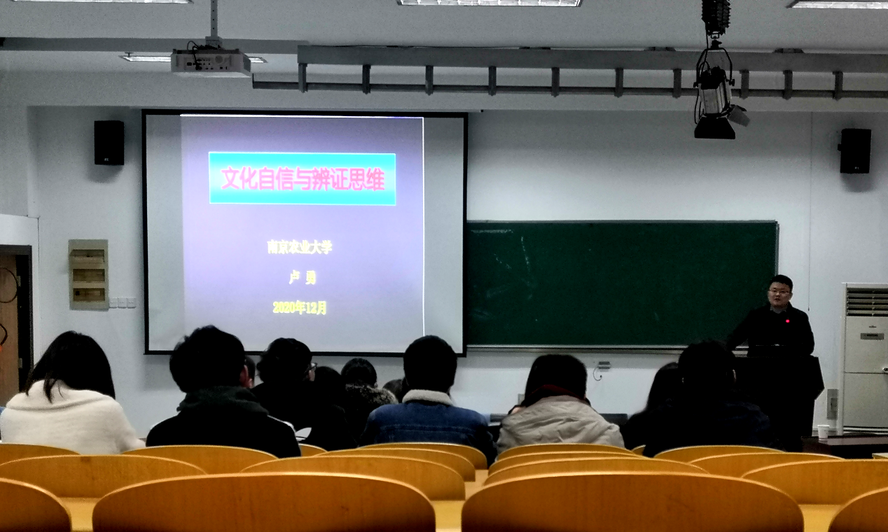 为了深入学习贯彻党的十九届五中全会精神,深入开展“四史”学习教育,引领学院广大学生党员牢固树立社会主义核心价值观,加强文化自信,12月9日下午,bat365正版唯一官网“文化自信与辩证思维”四史主题教育党课在肉品中心报告厅顺利举办。南京农业大学人文社科处副处长卢勇教授受邀开展报告。本次活动由食品院党委副书记邵士昌主持。