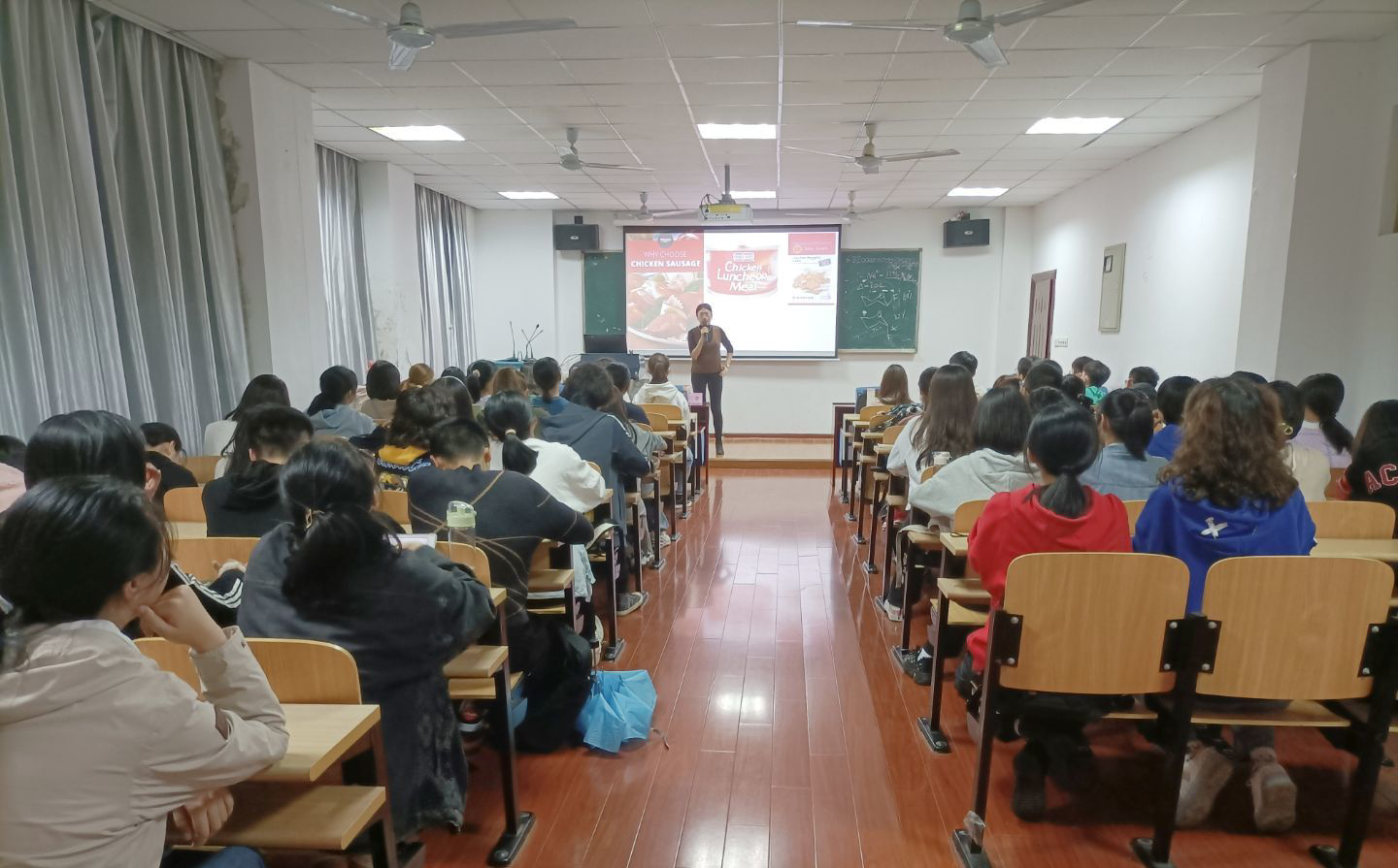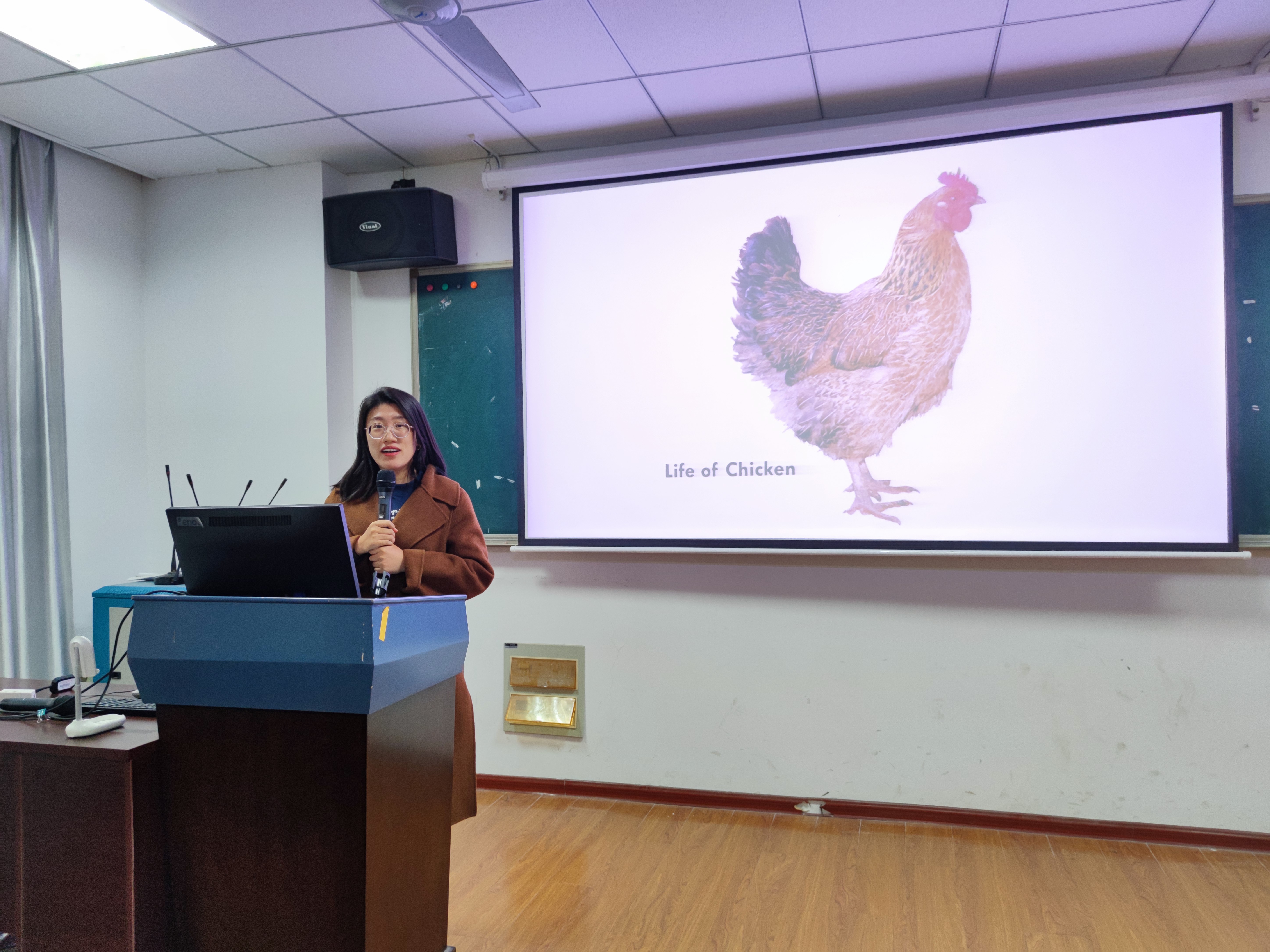 11月5日,赵雪老师以“一只鸡的奇妙之旅”为例,通过分析鸡从胚胎到成为熟食的过程中的各个环节,向同学们展示了一只鸡的加工过程中所包含的技术以及肉品加工中广阔的研究方向,以及肉品加工与质量控制创新团队的成员以及他们的研究内容,使同学们对此有了更加深入的了解。