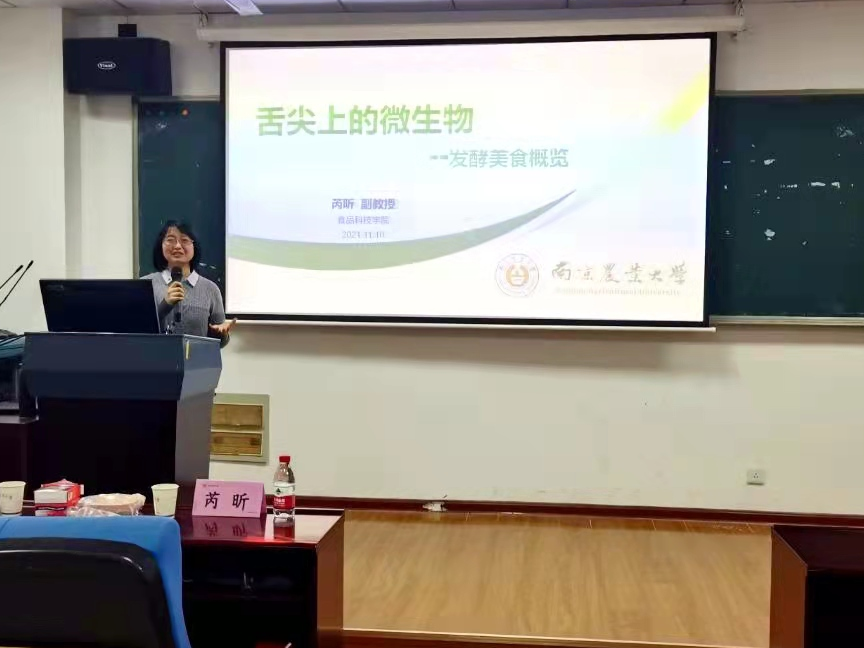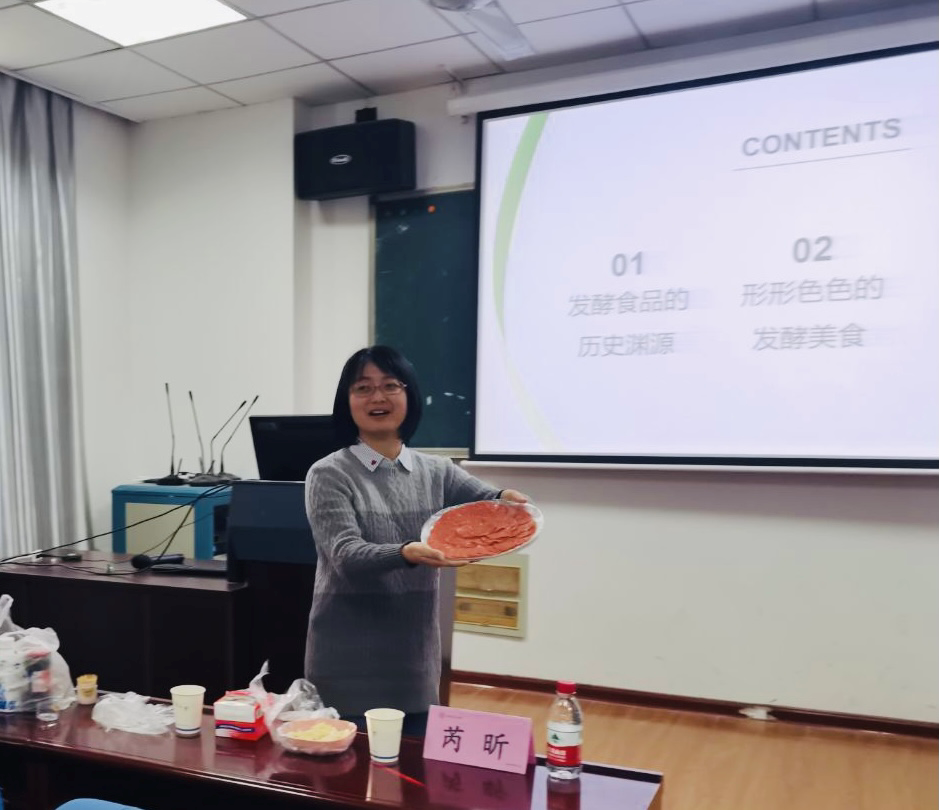 11月10日,“舌尖上的微生物——发酵美食概览”主题讲座成功开展。芮昕老师向大家介绍了啤酒、面包等发酵食品,追踪了发酵食品的最早起源,并准备了丰富的发酵食品供同学们品尝,使同学们对微生物相关食品产生了浓厚的兴趣。