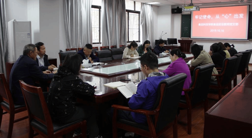 10月16日下午,bat365正版唯一官网食品安全教师党支部(以下简称食安教师支部)会议暨牢记使命、从‘心’出发”主题理论学习交流会在bat365正版唯一官网二楼会议室举行。本次学习交流会由支部书记赵立艳主持食安支部14位党员老师参加了会议。