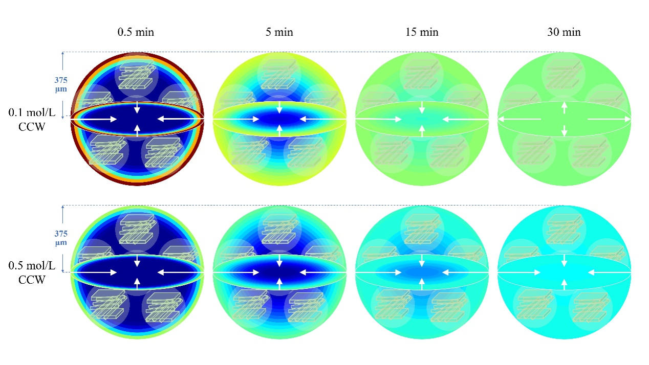 (点为实验数据,线为多孔扩散模型仿真结果;CCW为芹菜细胞壁材料;BCW为蓝莓细胞壁材料)